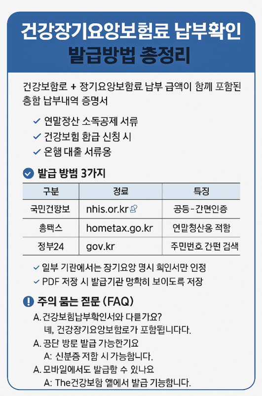 오늘은 건강장기요양보험료 납부확인서 발급 방법과 경로, 용도별 제출 방식까지 꼼꼼히 알려드립니다.