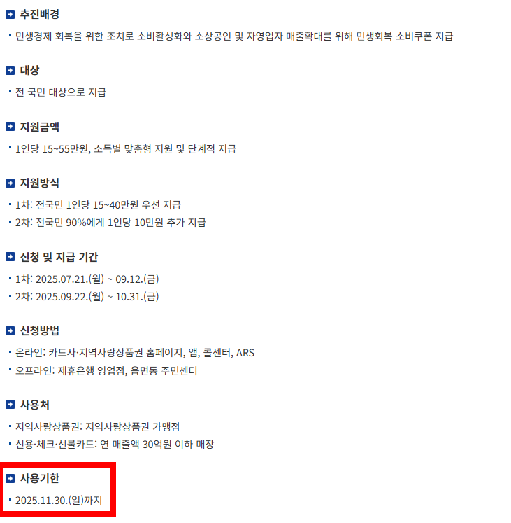 - 사용기한: 2025년 11월 30일(일)까지 (미사용 금액 자동 소멸)