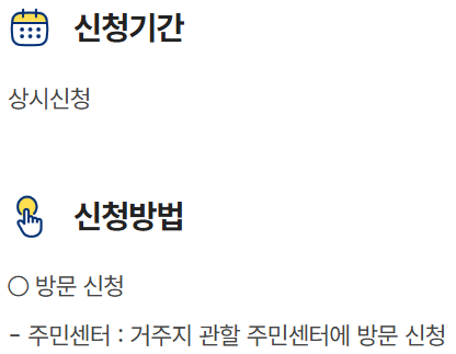 - 지역별로 온라인 신청 여부는 상이하므로 사전 확인 필요