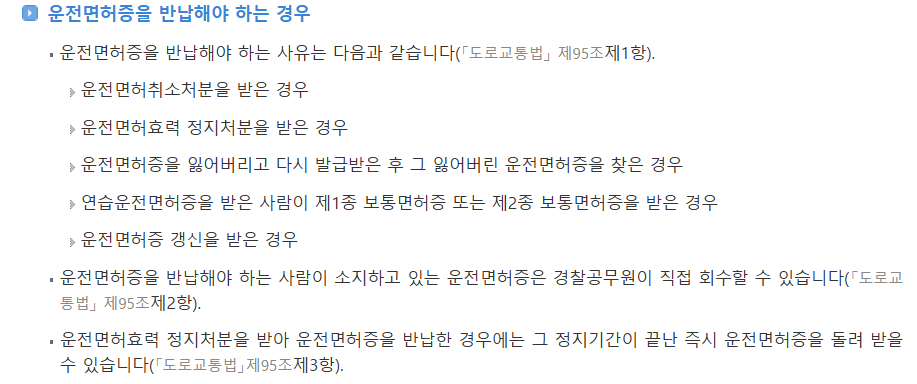 - 반납은 최종적이며, 다시 면허를 원할 경우 신규시험을 거쳐야 함