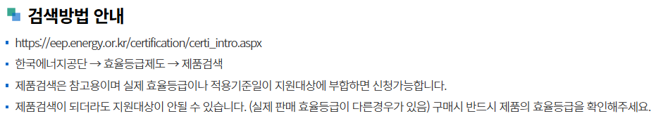 - 제품은 반드시 에너지소비효율 1등급 인증 제품이어야 합니다.