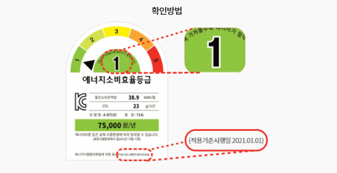 - 제품은 반드시 에너지소비효율 1등급 인증 제품이어야 합니다.