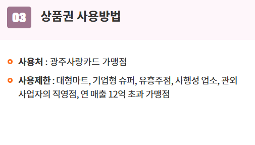 → 광주 지역 소상공인 업소에서만 사용 가능하며, 백화점, 대형마트 등은 제외됩니다.