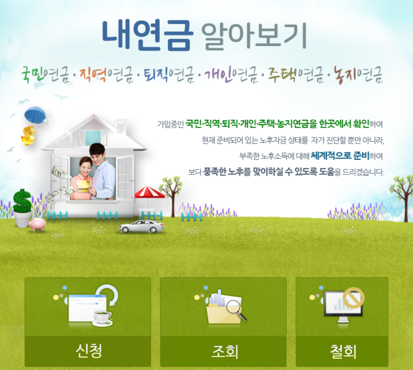 ‘내연금 알아보기’ 메뉴에서 공인인증서 또는 간편인증으로 로그인 후 조회할 수 있습니다.