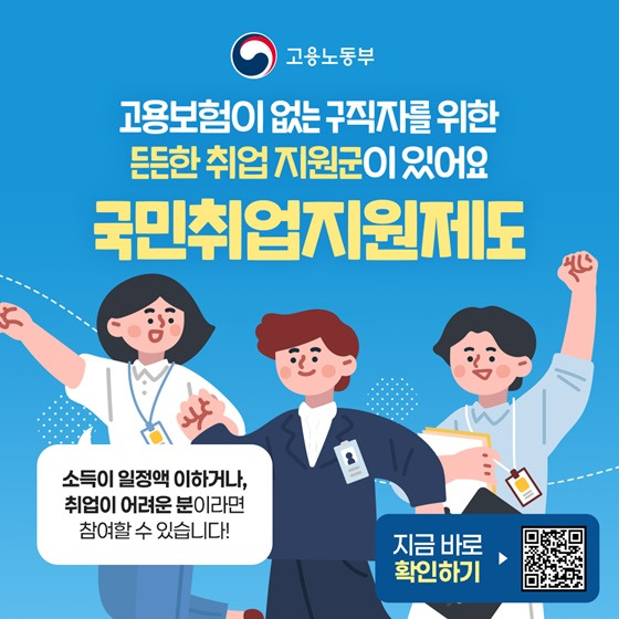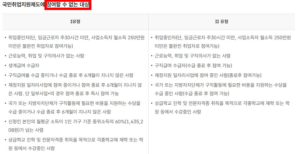 • 요건: 일정 소득 이하 + 취업 희망 의사