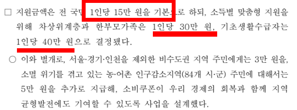 소득과 거주지 기준에 따라 1인 최대 55만 원 상당의 소비쿠폰을 지급합니다.