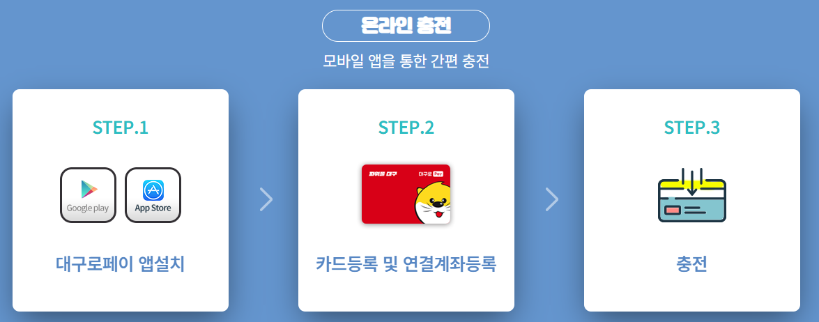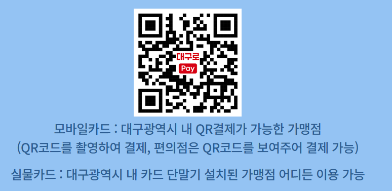 - 지급 수단: 대구행복페이 카드(앱 내 잔액 확인 가능)