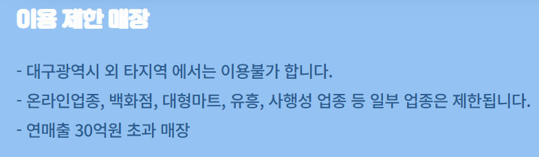 | 사용처 | 대구행복페이 가맹점 (소상공인 중심) |