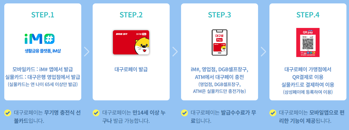 - 지급 수단: 대구행복페이 카드(앱 내 잔액 확인 가능)
