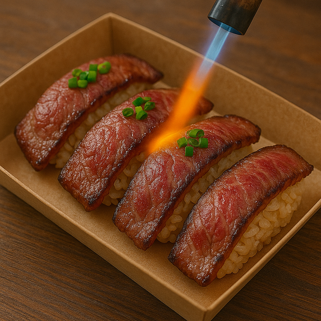 불초밥 살짝 익힌 불맛 나는 소고기 초밥, 즉석에서 토치로 구워줌