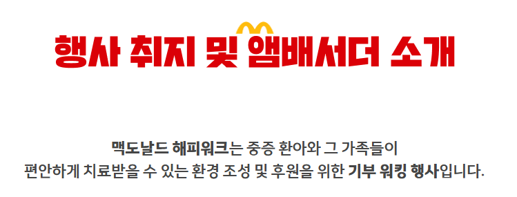 맥도날드 해피워크는 로날드맥도날드하우스(RMHC)에 기부를 목적으로 운영되는 비대면 워킹 챌린지 캠페인입니다.