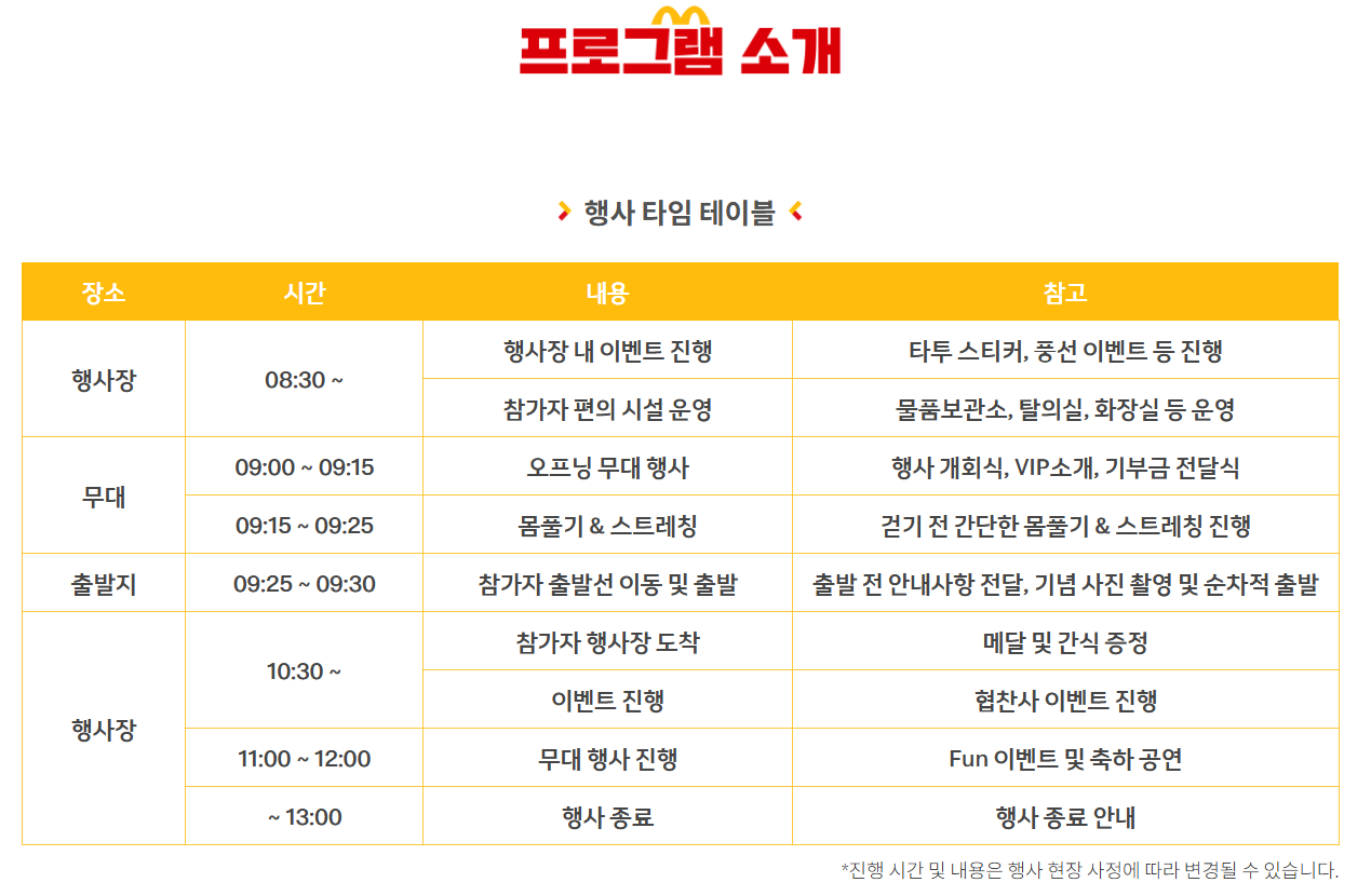 - 기부 연계: 참가비 일부가 RMHC에 기부
