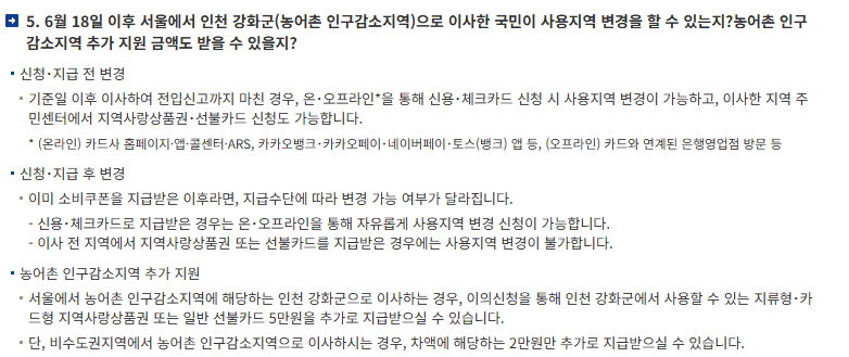 민생지원금 사용지역 변경 FAQ (자주 묻는 질문)