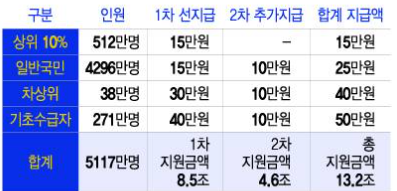 우선 지원 대상 미취업 청년, 자영업자, 육아 중인 가정, 1인가구 등 지자체별 차등