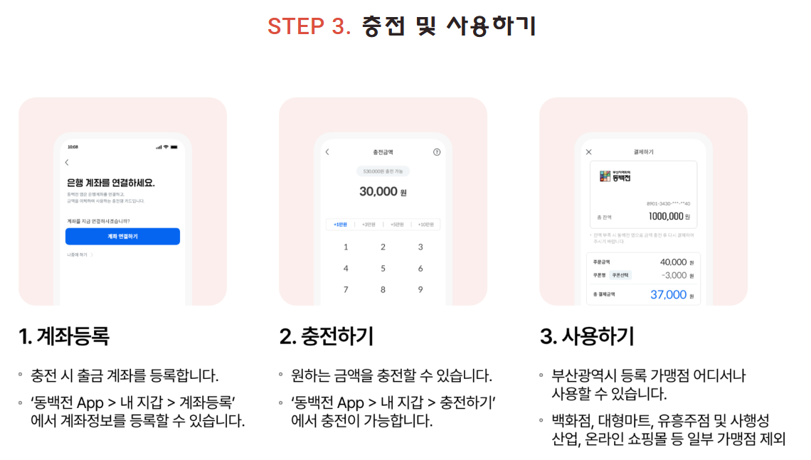 | 사용처 | 부산 동백전 가맹 소상공인 매장 |