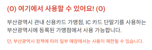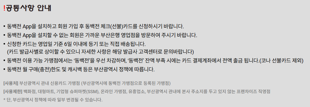 | 사용처 | 부산 동백전 가맹 소상공인 매장 |