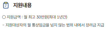 | 지원금 | 월 30만 원 × 최대 12개월 = 최대 360만 원 |