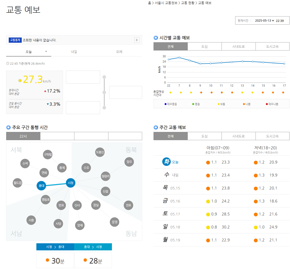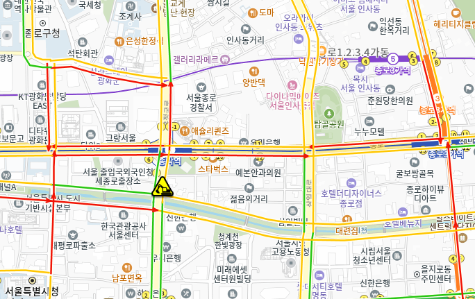 서울교통정보센터(TOPIS) TOPIS 접속 후 노선별 운행 현황 실시간 확인 가능