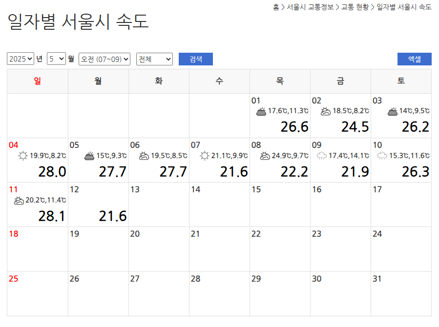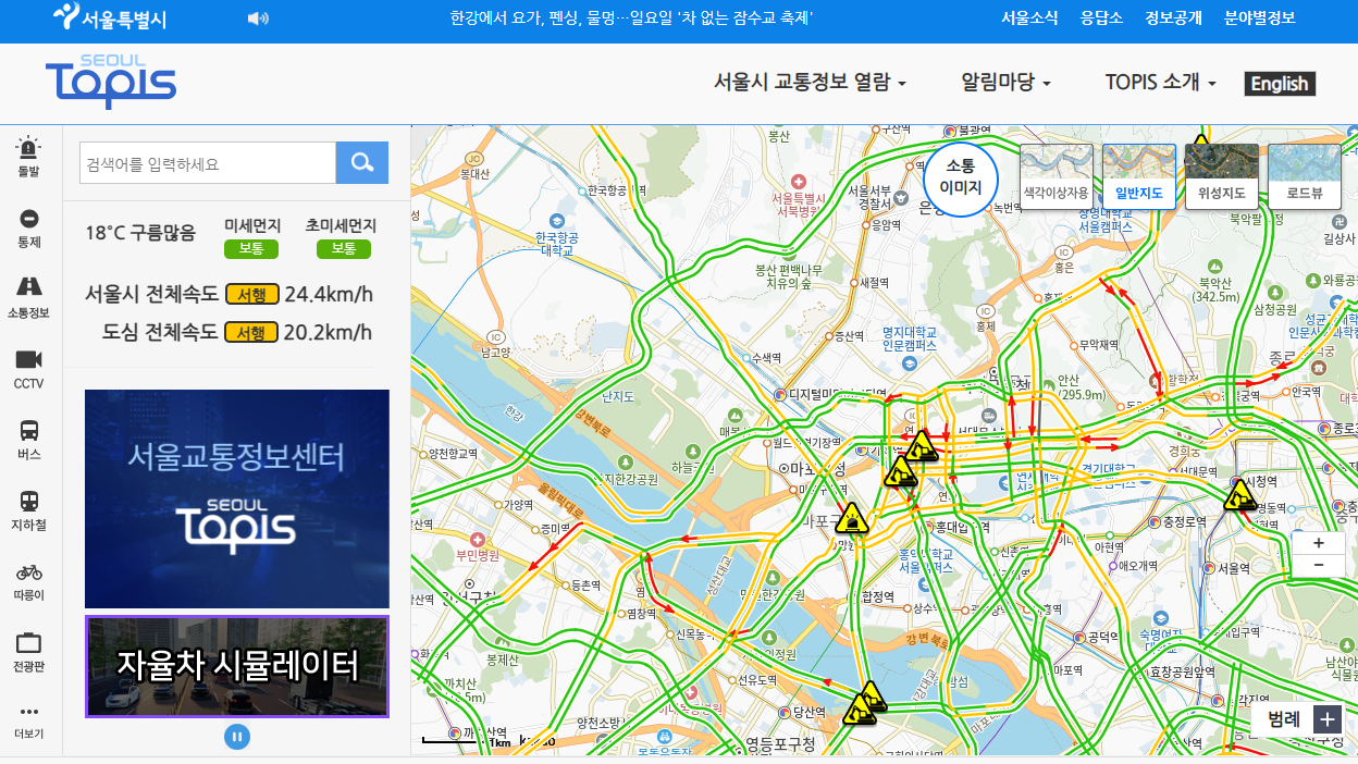 | 서울교통정보센터(TOPIS) | TOPIS 접속 후 노선별 운행 현황 실시간 확인 가능 |