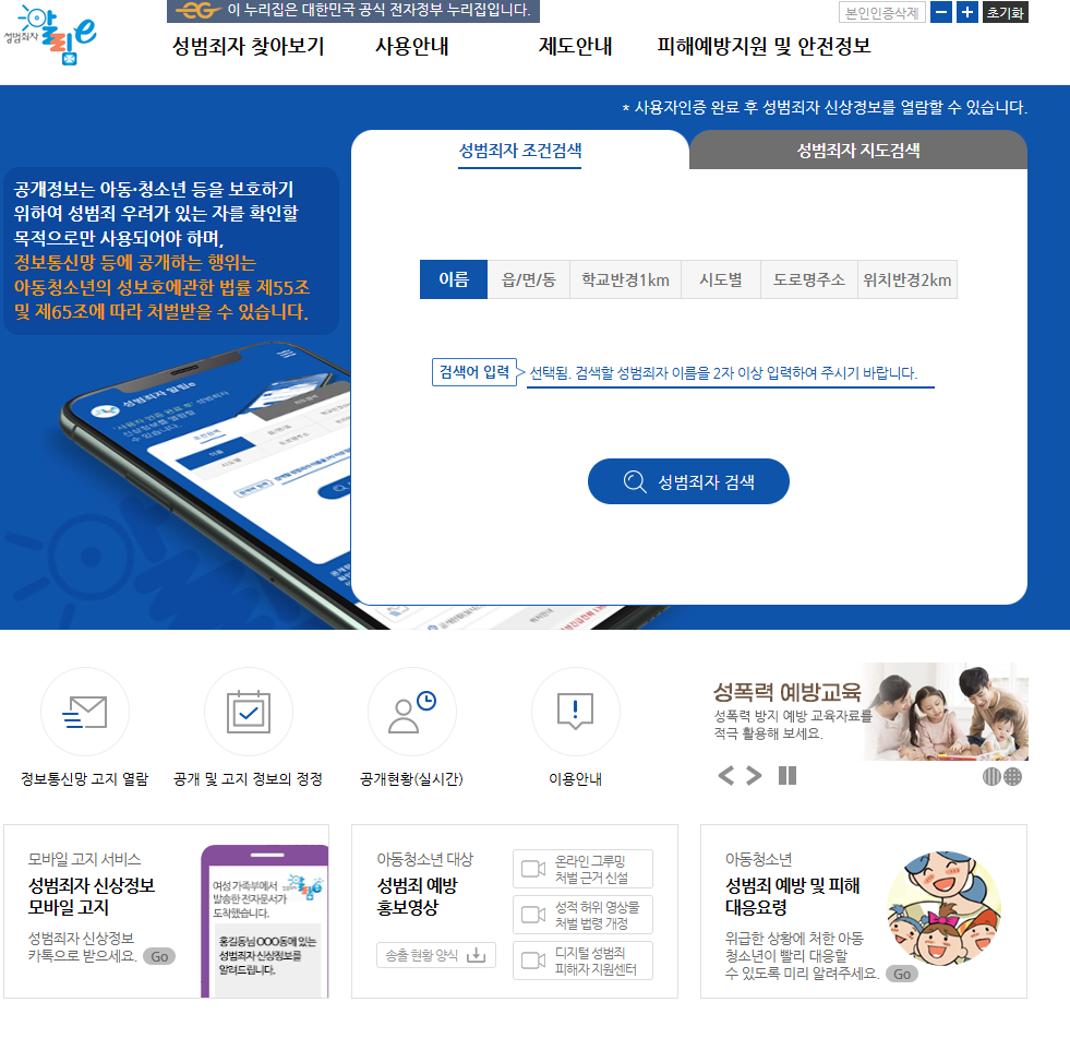 - 성범죄자 알림e 바로가기