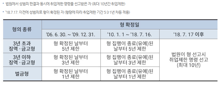 취업 제한 직종 예시:
