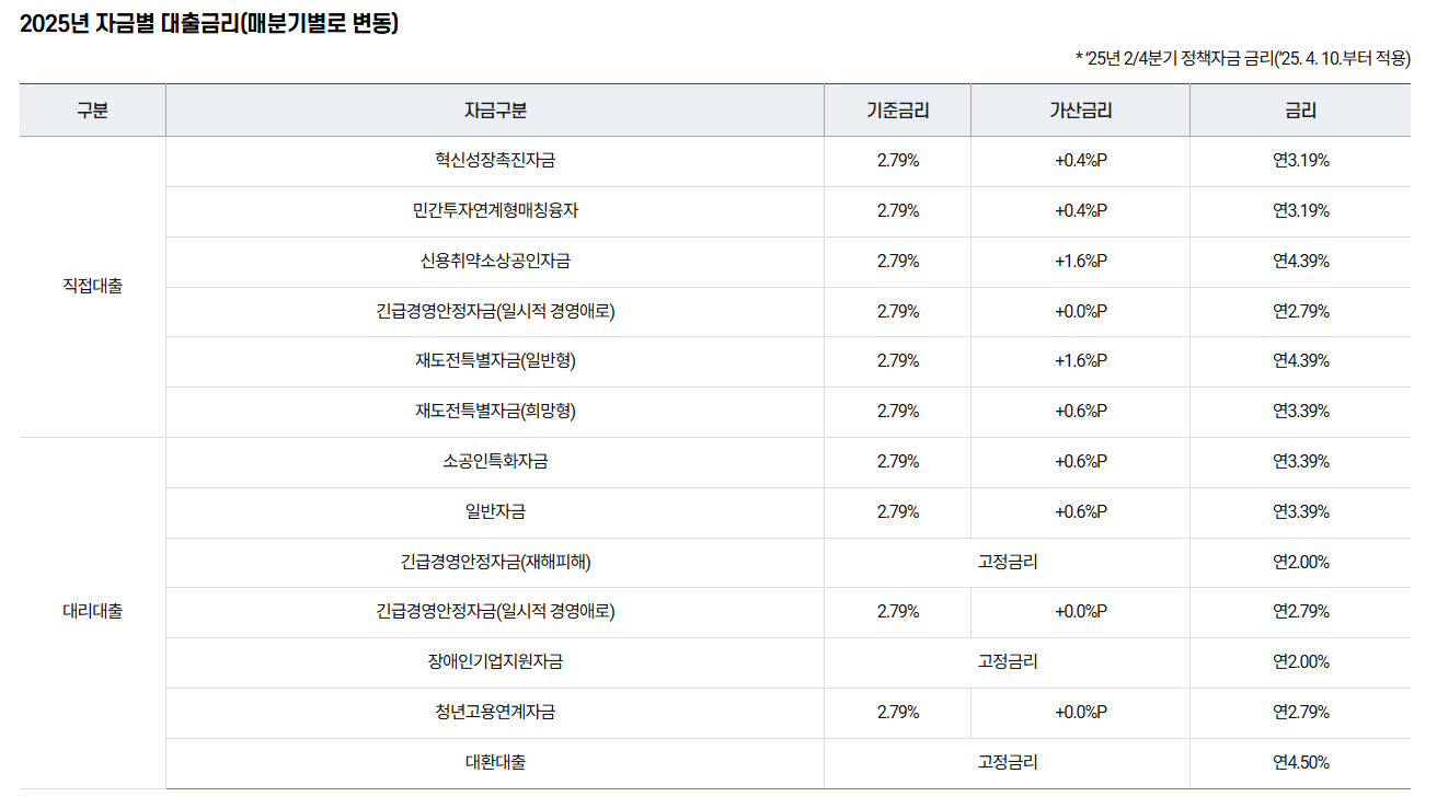 | 청년고용특별자금 | 만 39세 이하 청년 창업자 | 고용유지 시 우대금리 적용 |