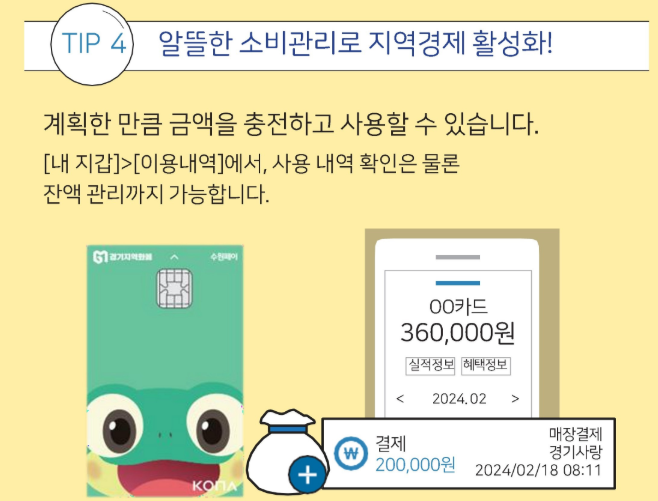 • 사용 불가 업종: 대형마트, 백화점, 온라인쇼핑, 배달앱, 유흥업소 등