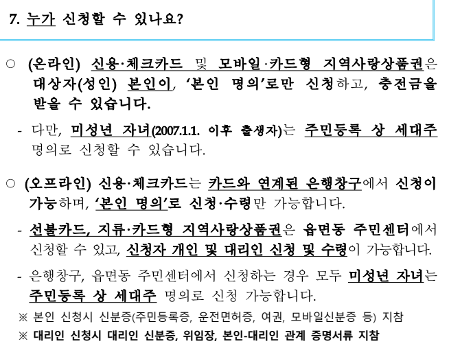 - 성인은 본인 신청, 미성년자는 세대주 대리 신청