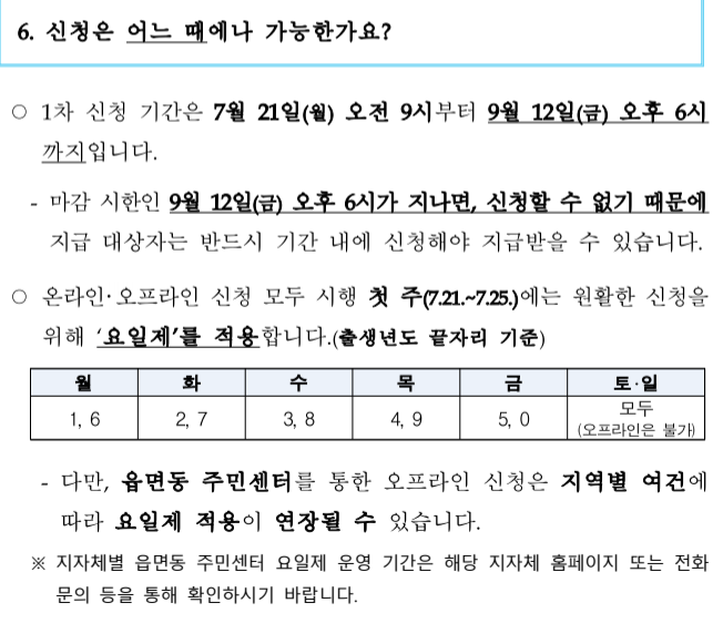 | 출생연도 요일제 | 신청 첫 주만 적용됨 (1·6: 월, 2·7: 화...) |