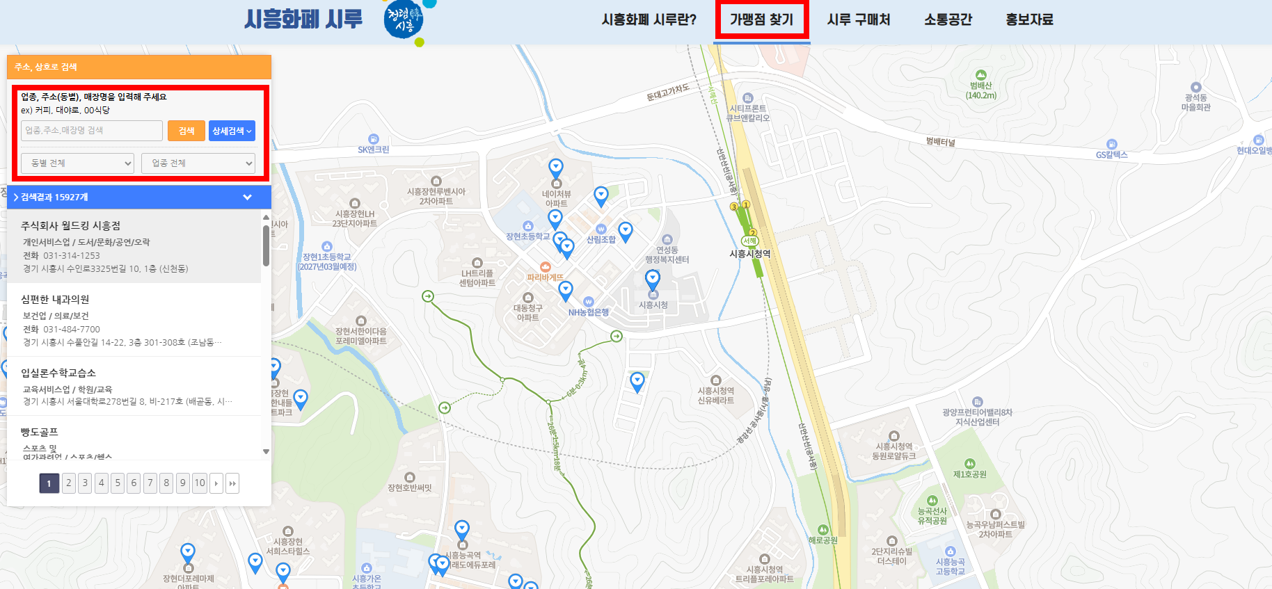 사용처 시흥시 내 등록된 소상공인 가맹점