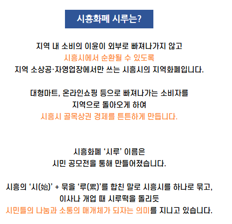 시흥화폐 시루는 시흥시에서 발행하는 지역 전용 화폐(지역화폐)로,