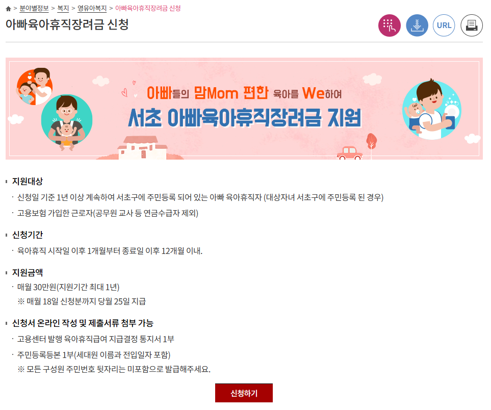 아빠육아휴직 장려금 신청 총정리(지원대상, 신청방법, 수당)
