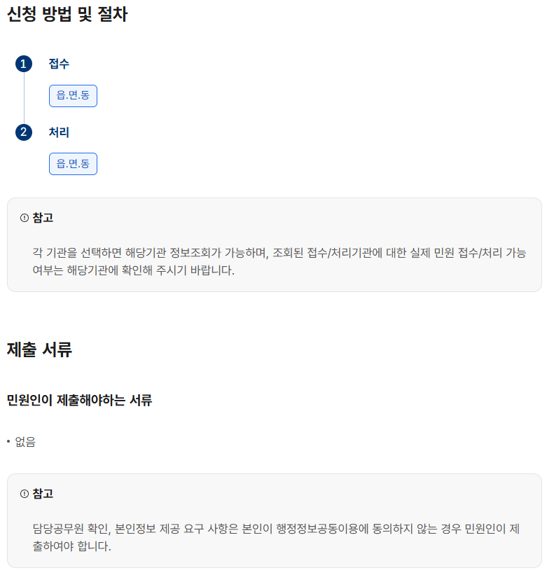 • 구청 처리 수수료: 대부분 무료