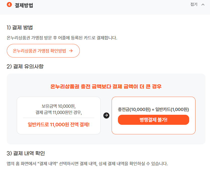 - 카드 결제 시 일반 신용카드와 구분되어 처리됨 (승인 메시지에 ‘온누리’ 표시됨)