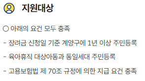 | 가족 요건 | 육아휴직 대상 자녀와 동일 세대 주민등록 |
