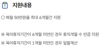 - 육아휴직 기간이 6개월 미만일 경우, 실제 사용 개월 수만큼 지원