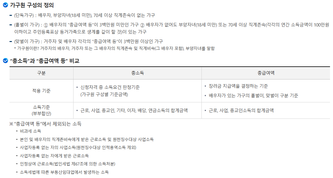 ※ 총소득은 본인과 배우자의 근로소득, 사업소득, 이자/배당소득 등을 합산한 금액입니다.