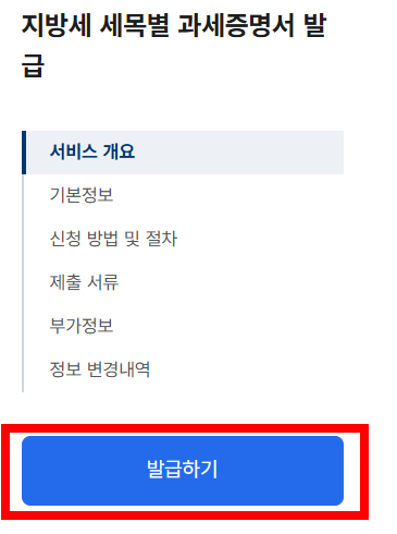 - ‘지방세 세목별 과세증명서’ 메뉴 클릭