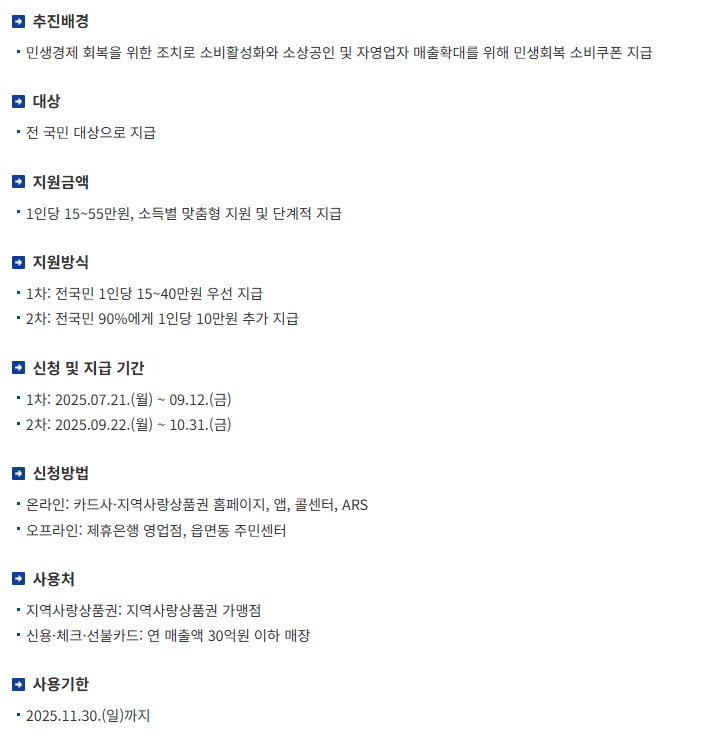 전국민 대상 ‘민생회복 소비쿠폰’을 지역화폐·카드포인트 형태로 지급합니다.
