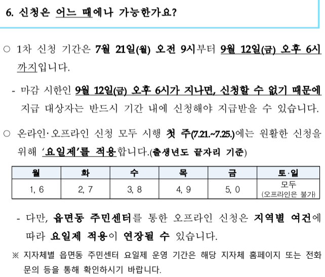 출생연도 요일제 신청 첫 주(7/21~7/25)에는 요일제 운영