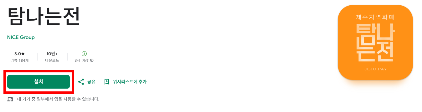 3. ‘탐나는전 지역화폐’ 앱 설치