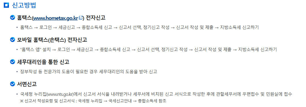 | 신고방법 | 홈택스(PC), 손택스(모바일), 세무서 방문 |