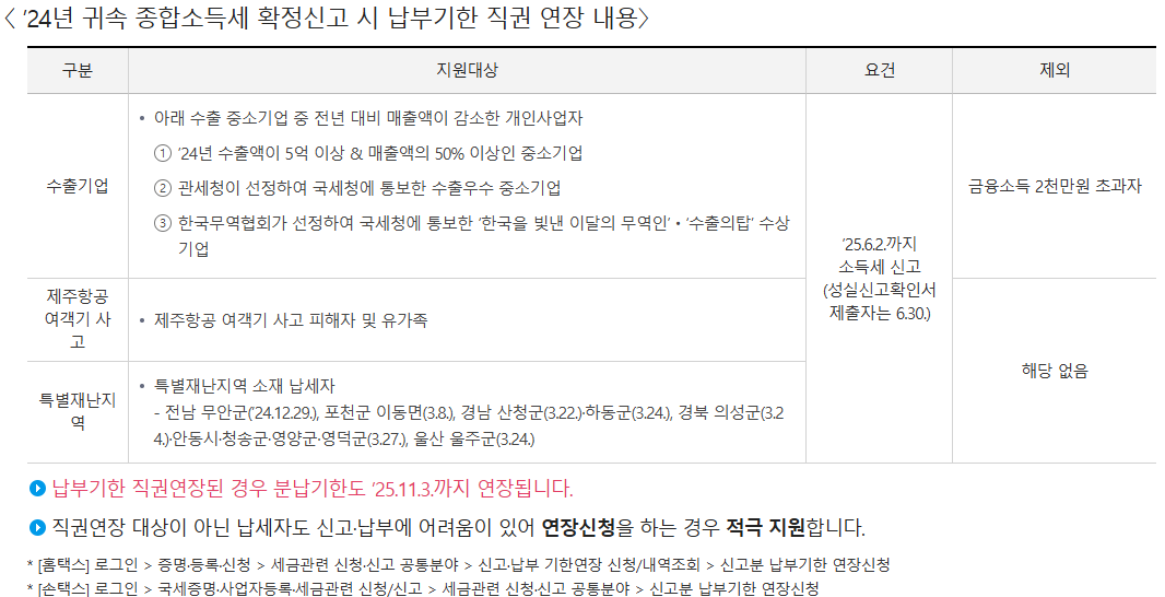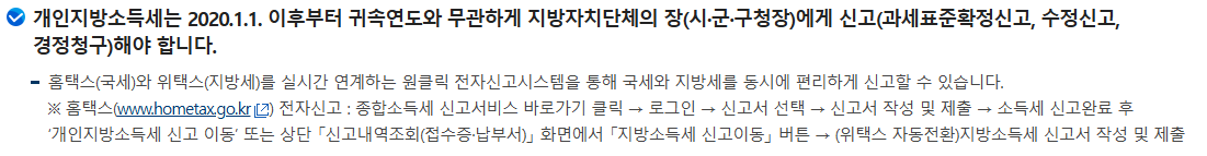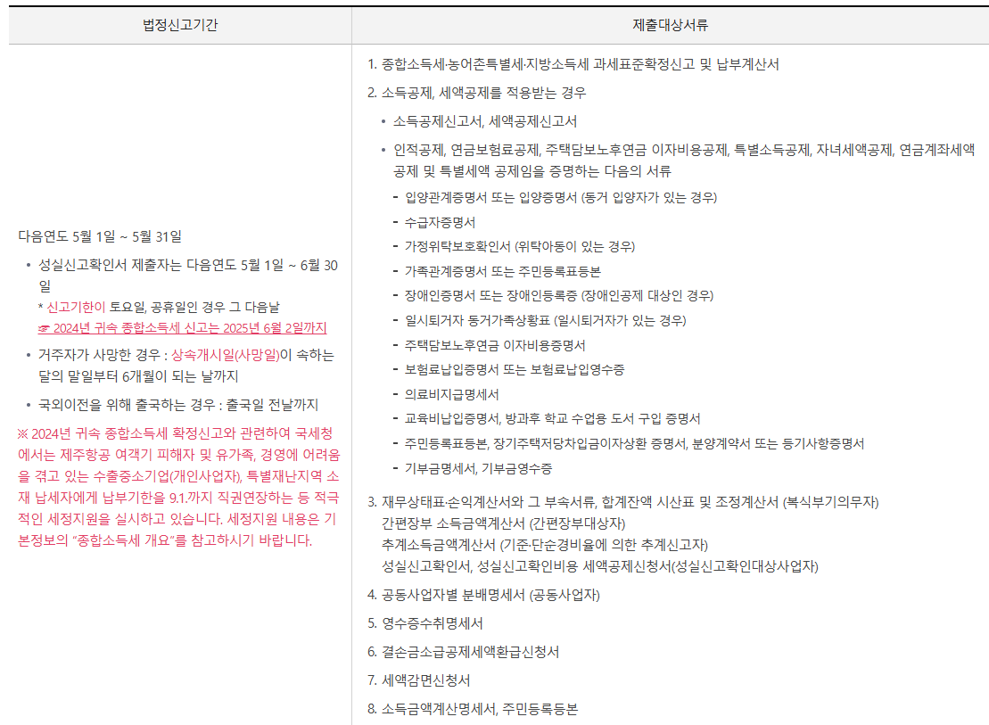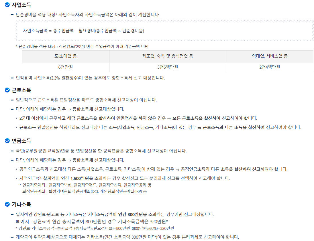 | 세무사 대행 | 복잡한 소득구조일 경우 세무사에 위임 가능 |