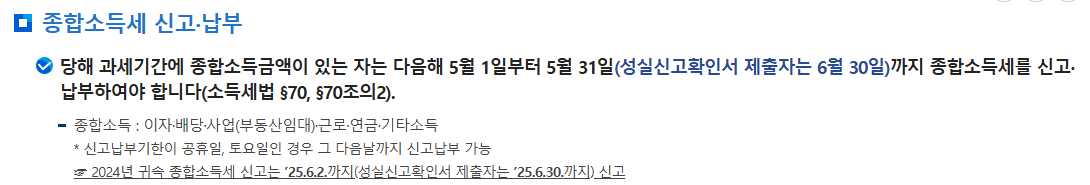 | 종합소득세 신고기간 총정리(+홈택스, 손택스 신고 방법) (1) | 2025.06.02 |
