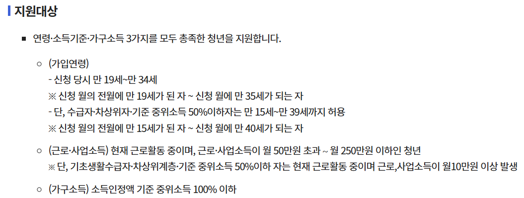 - 신청일 기준 만 19세 이상~만 34세 이하 청년