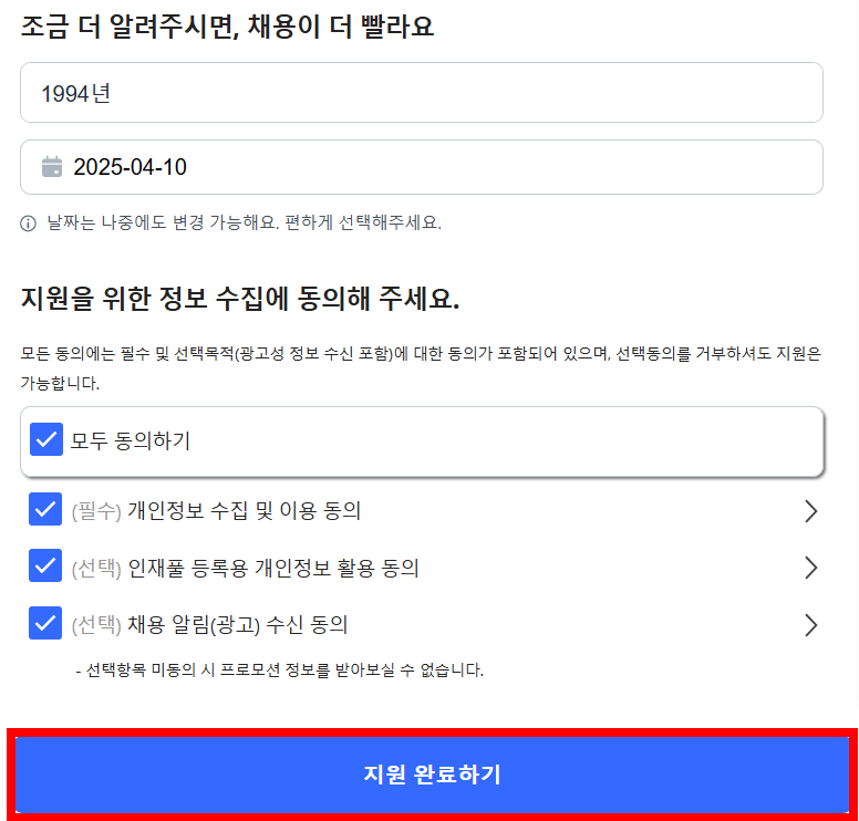 지원서에는 다음과 같은 정보들을 입력해야 합니다: