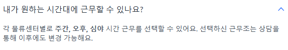 - 복장: 쿠팡 근무 조끼와 전용화 지급 / 개인은 면바지, 운동화 착용