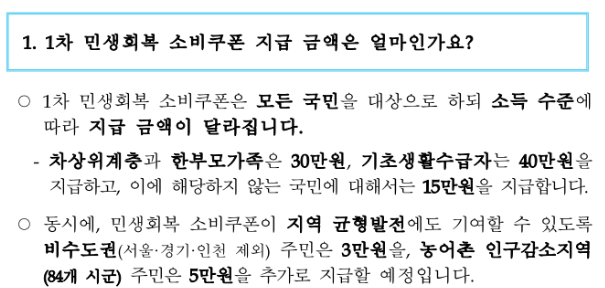 민생회복지원금 지급 대상 총정리(+지급시기, 신청방법, 금액, FAQ)