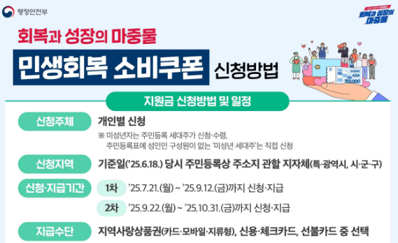 2025년 하반기, 정부는 전국민 소비지원 정책의 일환으로 민생회복 소비쿠폰을 지급합니다.