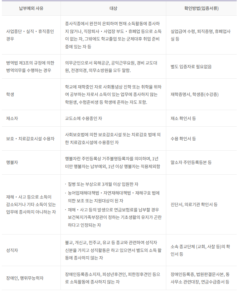 납부예외 신청이란?(납부예외 대상)